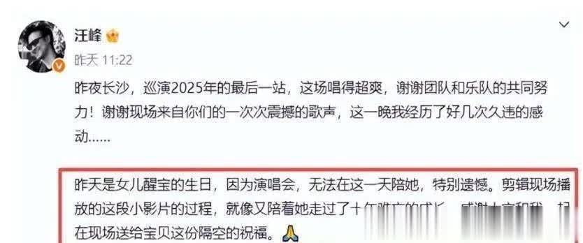 在醒醒生日当天,汪峰因忙于个人演唱会未能亲临庆祝。不过,他通过大屏幕播放自己与女儿的VCR,传递了对女儿的深情祝福。那段甜蜜的父女互动,令现场观众动容,大家都为这份父爱的表达而歆羡。
