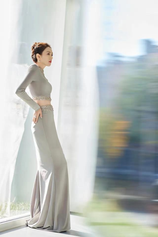 今天的童瑶身着银灰的长袖服饰与美人鱼般的长裙,让她看起来知性而美丽。为何用知性这个词来形容她,因为童瑶的身上所散发出来的那种气质就是知性的。