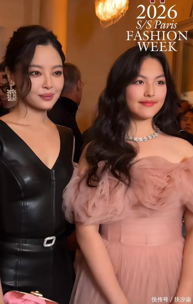 10日,李湘晒出女儿王诗龄参加RogerVivierd在巴黎的活动。